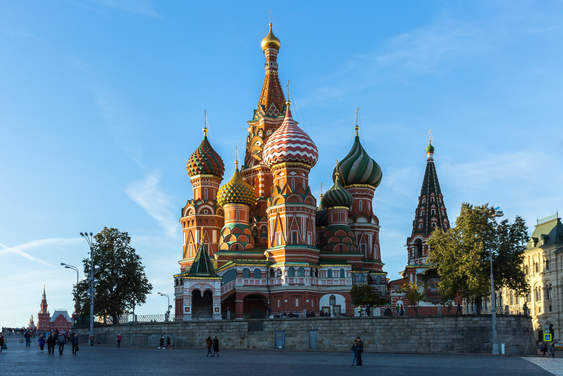 ⊙早餐后,参观俄罗斯的“心脏”红场及周边景观(约 1 小时),红场是莫斯科的心脏,是俄罗斯重要节日举行群众集会和阅兵的地方,意为“美丽的广场”。红场周边景观有圣瓦西里大教堂(外观)、列宁墓(外观)、国家历史博物馆(外观)、莫斯科最大的古姆百货商场、亚历山大花园、无名烈士墓、长明火、朱可夫雕像。