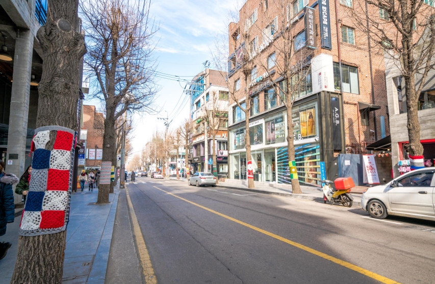 【新沙洞】新沙洞是首尔江南区著名的时尚艺术街区,以700米长的银杏林荫道为核心,融合了潮流购物、艺术画廊和网红咖啡厅。这里聚集了Gentle Monster、3CE等设计师品牌店,海报墙和韩剧取景地使其成为拍照圣地。秋季落叶纷飞时尤其浪漫,被称作“韩版三里屯”。