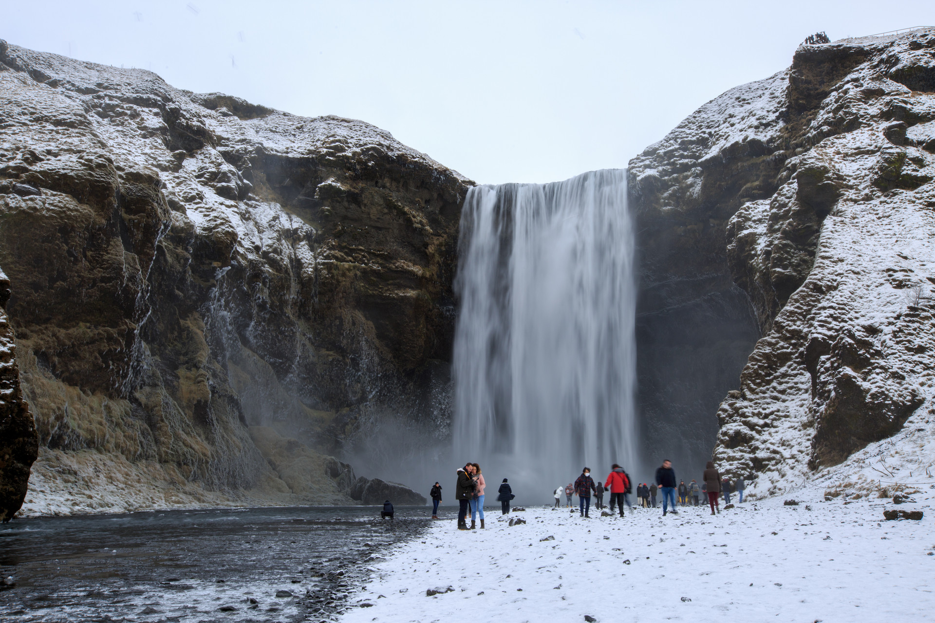 【塞里雅兰瀑布】外观,冰岛西南部一座垂直高度 63 米的瀑布,位于斯科加尔以西约 30 公里处的塞里雅兰河上,也叫“牧羊瀑布”。在瀑布后面,悬崖底部有一条可供游人穿过的小径。在那里游览拍照是这里的一大亮点,有如进入水帘洞一般!无数摄影师被它的美妙所倾倒!太阳照耀在水帘上,幻化成一道美丽璀璨的虹,景色十分壮观。