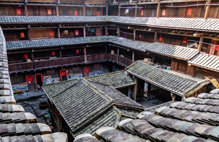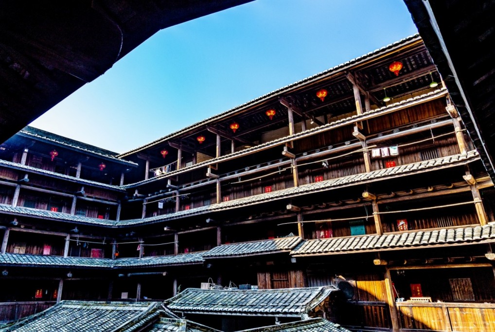 下午: 前往龙岩。前往【永定洪坑土楼】这里是闻名遐迩的土楼之乡,各式土楼遍布乡村 , 形成一个依山傍水,错落有致的与大自然和谐统一的土楼群。参观世界文化遗产【土楼王子景区-洪坑客家土楼群】这里被称为浓缩永定客家土楼的博物馆,村中有最富丽堂皇的“土楼王子”振成楼,有最小的“袖珍圆楼”如升楼;有布达拉宫式的奎聚楼;有府第式的福裕楼......天然镶嵌于梯田山谷间、弯曲溪岸上,与山林、小溪、自然村落组成旋律优美的田园牧歌。永定客家土楼因年代之久、规模之大、结构之巧、内涵之丰、保存之完整,而被称为“世界上独一无二的神话般的山区土楼建筑”。