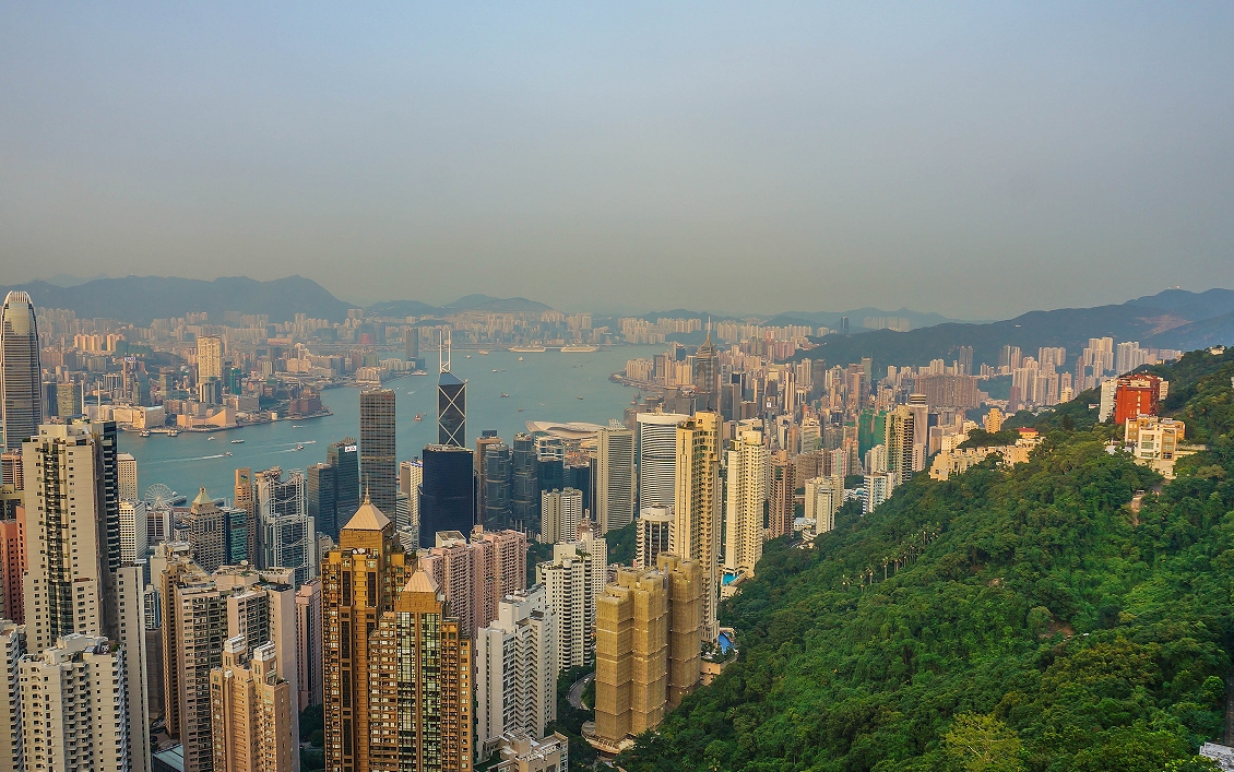 太平山顶,解锁一览无余的辽阔风景,远眺大屿山,俯瞰香港全景,近处可见层层叠叠的摩天高楼和维多利亚海港全