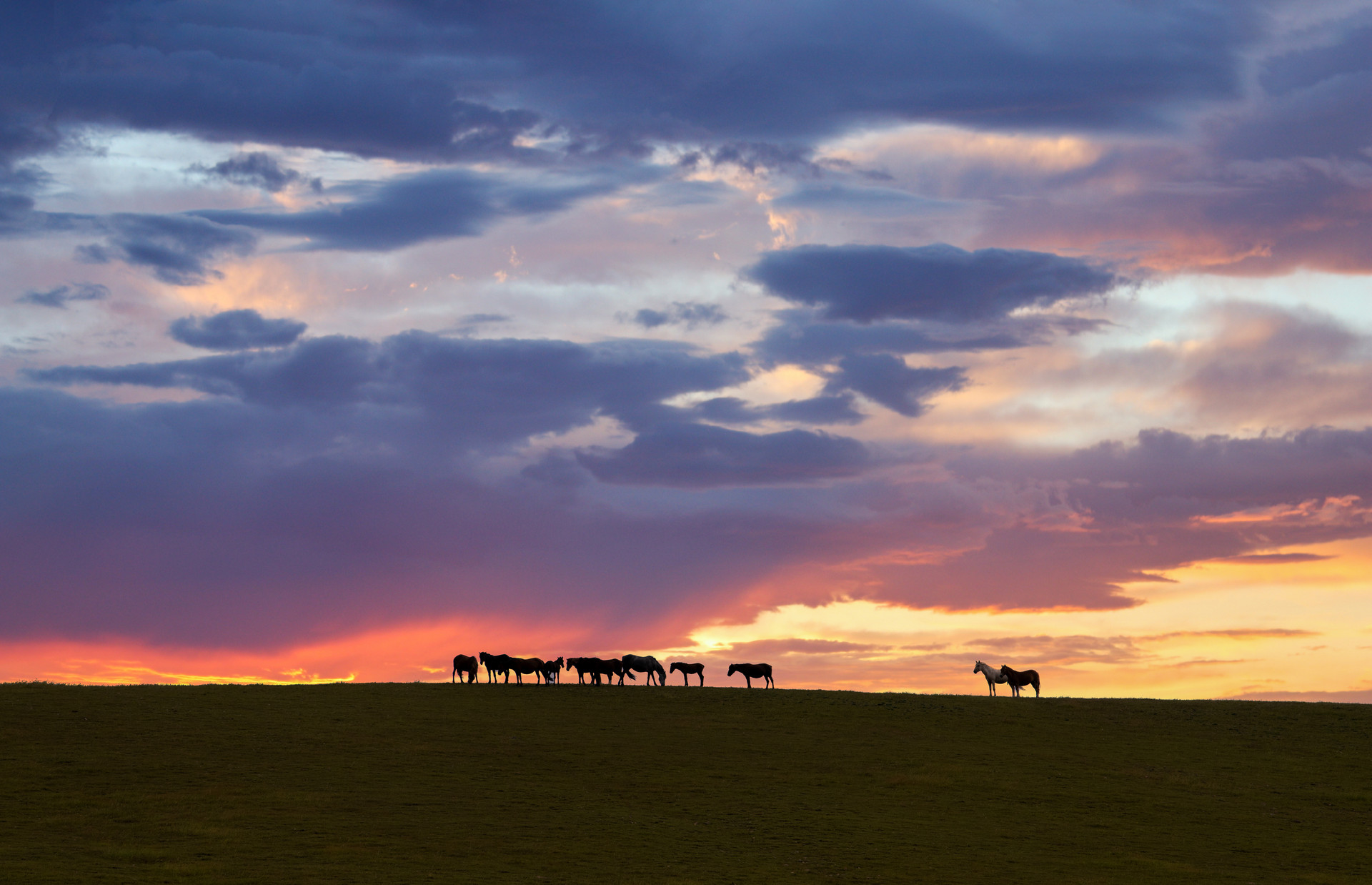 【炊烟牧归·日落剪影】当太阳落山,草原上的居民开始准备晚餐,一缕缕炊烟升起,它们或袅袅上升,或随风飘散,
