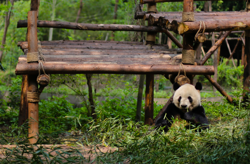 熊猫基地是世界著名的大熊猫迁地保护基地、科研繁育基地、科普教育基地和文化旅游基地,占地面积 3.07 平方公里。作为“大熊猫迁地保护生态示范工程”,以保护和繁育大熊猫、小熊猫等中国特有濒危野生动物而闻名于世。这里山峦含黛,碧水如镜,林涛阵阵,百鸟谐鸣,被誉为“国宝的自然天堂,我们的世外桃源“。