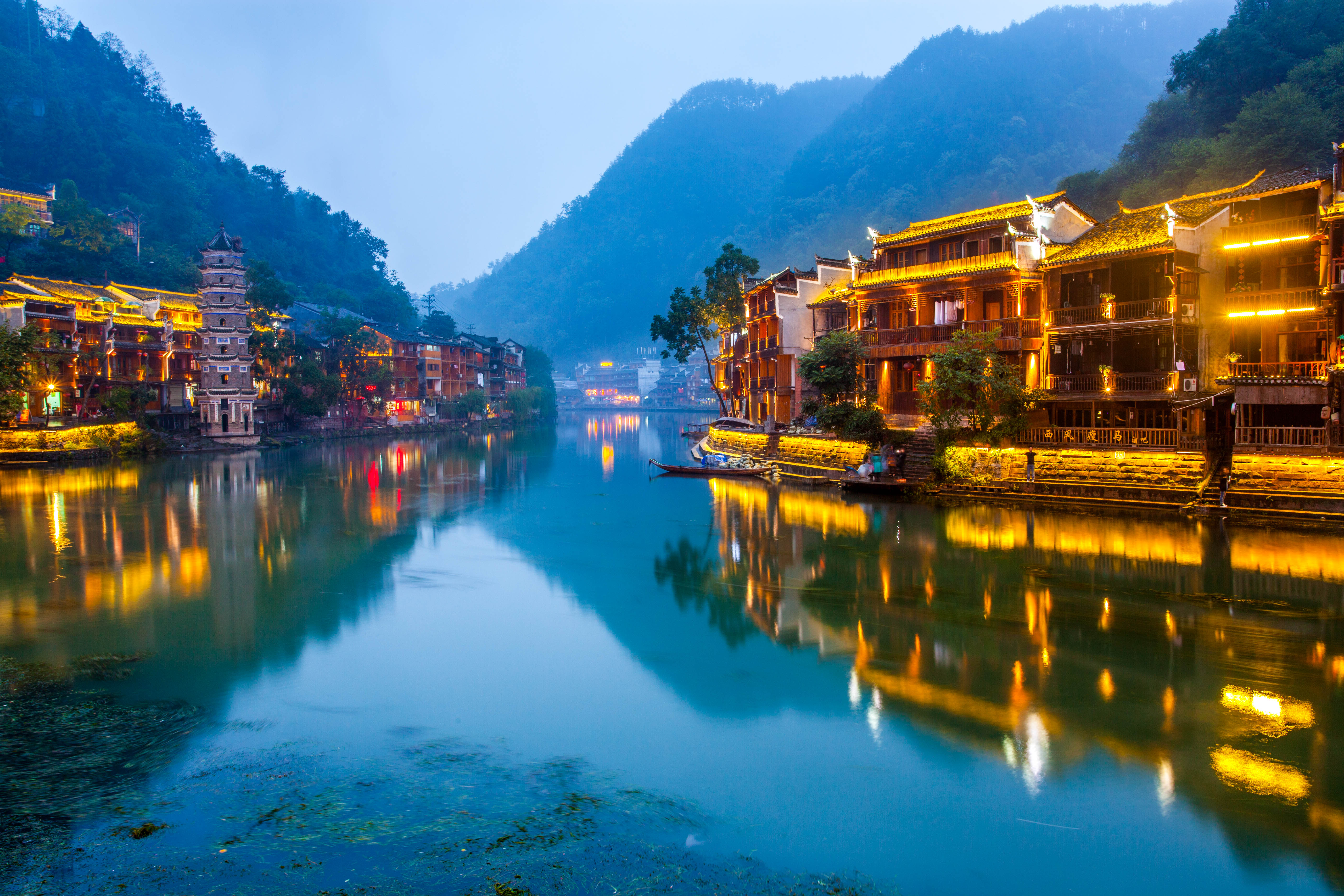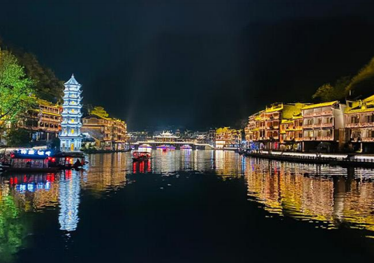 乘车(车程约 3 小时)赴最美小城【凤凰古城】(接驳车赠送;注:凤凰古城不含九景门票,若因政府政策性变化,若需购票敬请自理)古城依山伴水,人杰地灵,沱江穿城而过,民族氛围浓厚,名胜古迹甚多;晚餐后欣赏凤凰古城别具一格的醉美夜景,观北门古城楼、青石板街、东门古码头、沱江两岸的吊脚楼,别有一番韵味。晚上夜游凤凰古城,于沱江边小酒吧落座,欣赏沱江两岸醉人【凤凰夜景】。