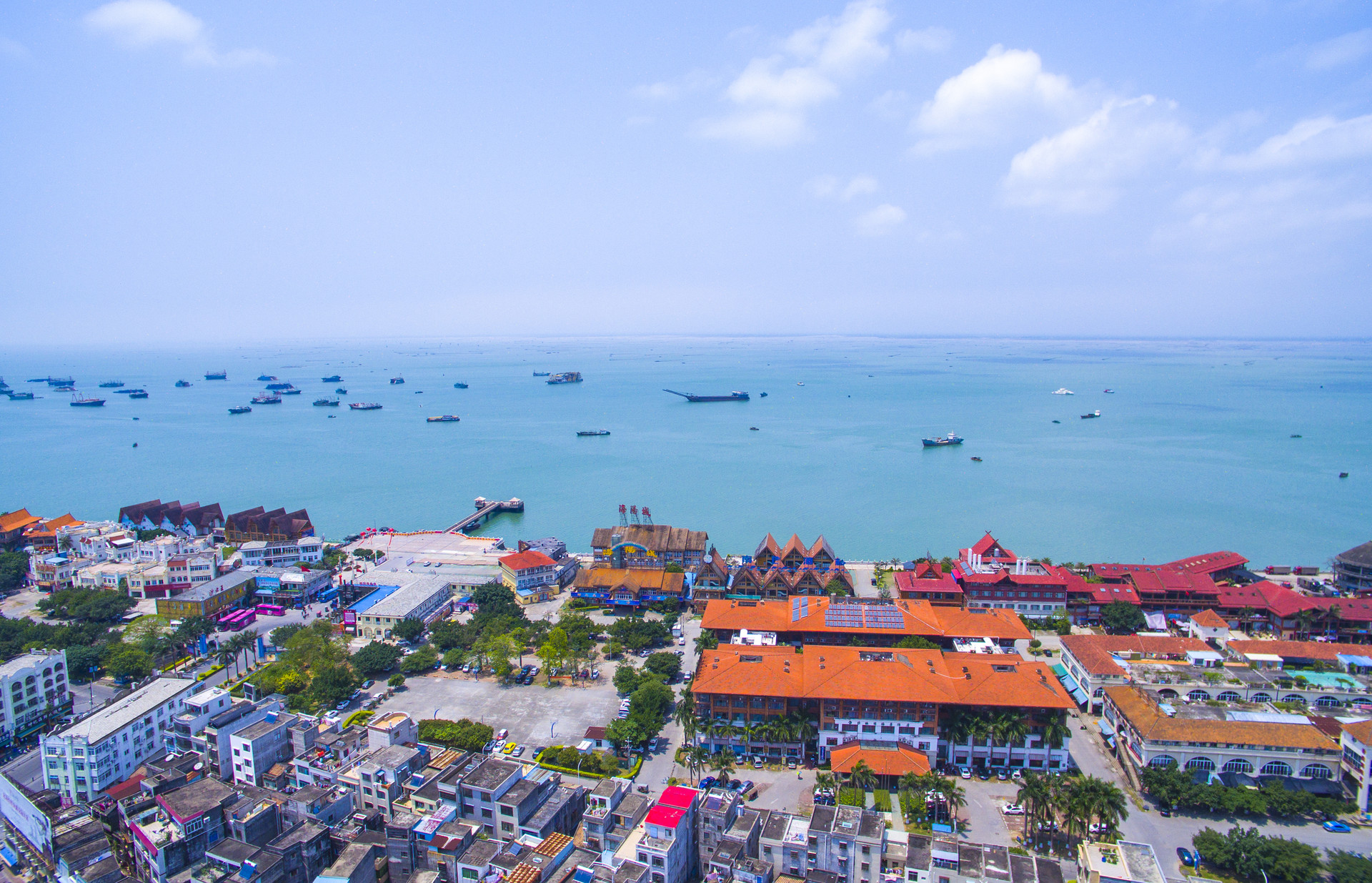 游览【南湾基地】(游览约 60 分钟,)浅滩戏水、一览南湾街全貌、远眺鳄鱼山顶灯塔、猪仔岭等,您还可以选择【各式海上项目】如潜水、帆船、海上快艇等,(注:需客人自行付费,涠洲岛海上项目不算自费)。感受北部湾海域的迷人风光;