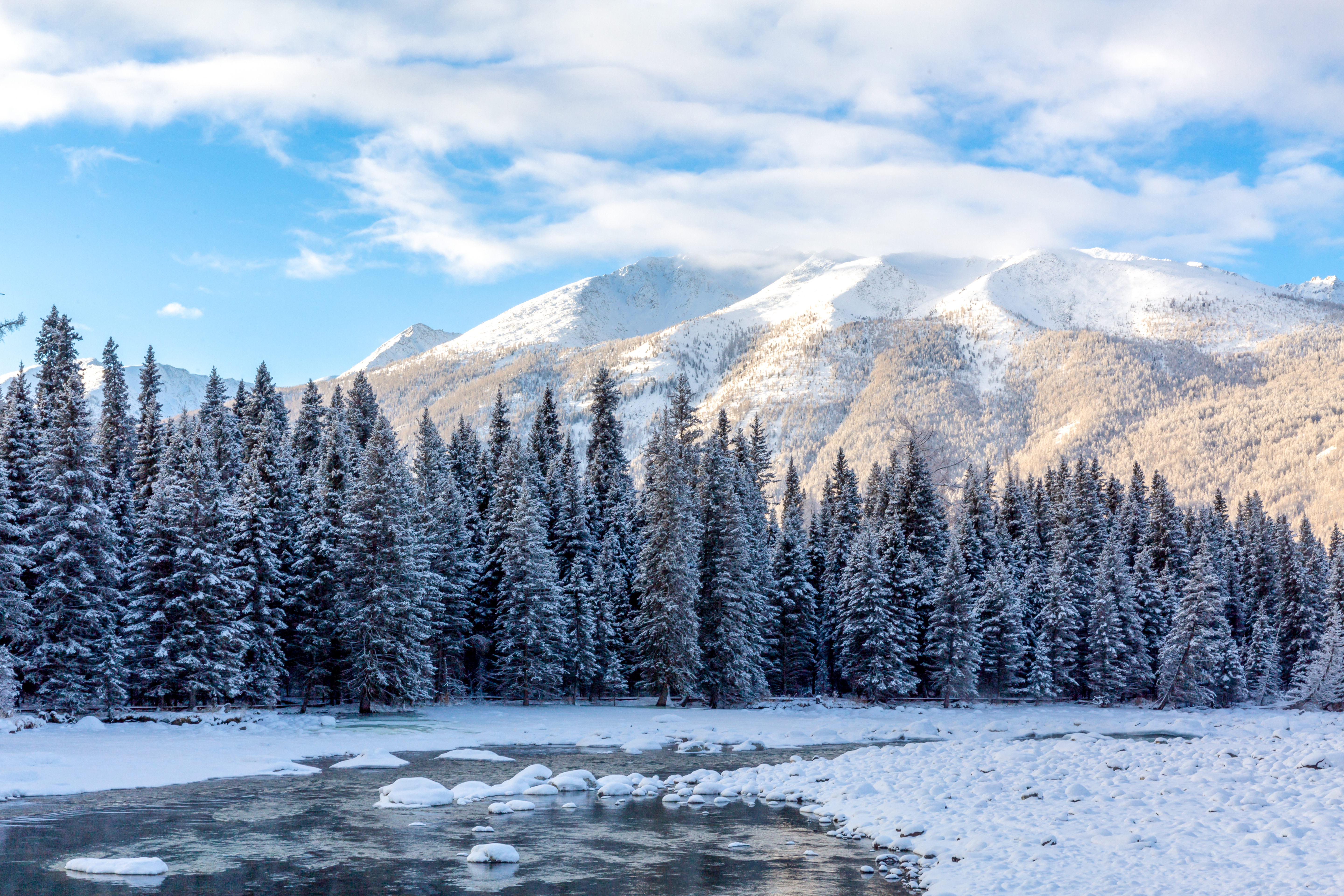 早餐后乘商务车前往西北第一村白哈巴村,沿途穿越阿尔泰山原始森林,积雪压满松枝似 “雪塔” 林立,中哈界河蜿蜒在雪原间,河水凝结成冰,映着蓝天泛着清透光泽,每一眼都是沉浸式雪域画卷。
