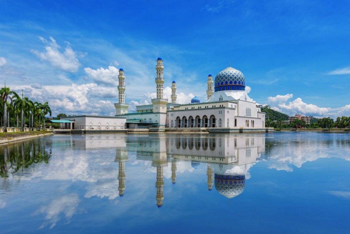 上午:早餐(酒店)后,前往水上清真寺(含马来服装旅拍),清真寺为白色的建筑本体,覆盖着蓝色圆顶的水上清真寺,在金色阳光的照耀下突显出庄严圣洁。